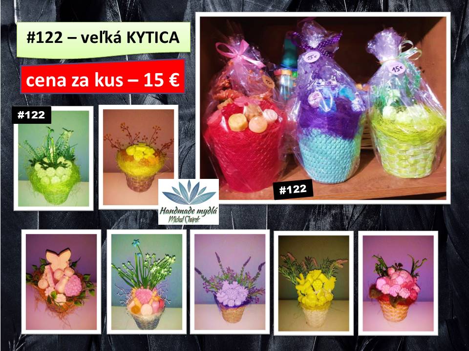 Kytice sa robia jednorázovo odoka, podľa vyrobených malých mydiel, čiže nezaručujem rovnakú podobu finálnej kytice, ale ak by ste mali záujem, na všetkom sa dá dohodnúť, treba si vybrať farby, vône, prípadne tvary, veľkosť atď.